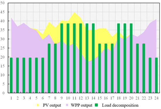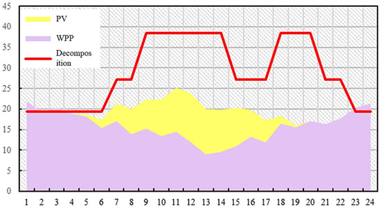 (3) Normal-period decomposition: the daily power is divided into the normal periods, and the peak and valley periods receive zero power decomposition.
