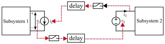 A variable that is transferred from one subsystem to another is referred to as an interface variable. The interface variable is sampled and delayed before being applied to the receiving subsystem. The sampling period is the time difference between two consecutive sending samples of interface variables from one subsystem to another. In this paper, only delays occurring between two subsystems are considered, and the sampling period is assumed to be equal to the simulation time step of the subsystems. Both subsystems are simulated with the same time step s.