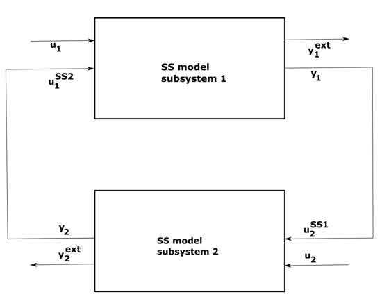 State-space models of the subsystems one and two in the discrete time-domain can be represented by Equations (1) and (2) respectively: