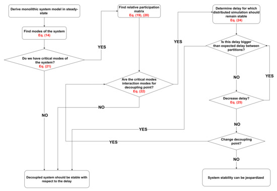 As we saw in Section 3.2, certain decoupling points are more challenging than others. Our methodology focuses on finding how challenging a specific decoupling point is in terms of simulation stability and, if possible, suggesting other decoupling points that would lead to stability of the simulation for the specified delay with preserved fidelity. This was done with the application of modal analysis explained in Section 4.2 and verified on the examples from Section 3.2 modelled using distributed the state-space modelling approach from Section 4.1.