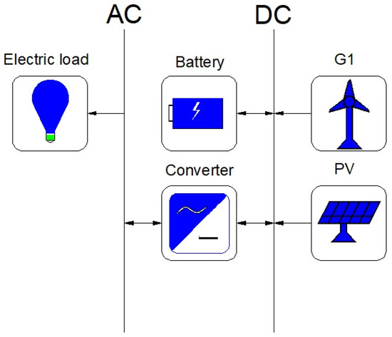 In this chapter, results of the presented model are shown. The system is hybrid and it contains: electrical load, batteries, converter and two energy sources: wind turbines and PV system. Figure 2 presents a hybrid off-grid system scheme with wind turbines and PV system as energy sources.