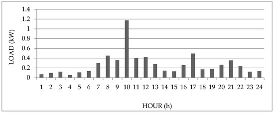 According to Figure 2, the first step in modelling an off-grid PV system is to define an electrical load. To determine the load diagram for the model, optimization of the data provided, pertaining to an electrical load, were measured in a house in Osijek. Figure 3 presents load diagram, which refers to average hourly load measured during one year.