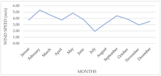 Data regarding wind speed for chosen location in Osijek was provided in accordance with [17] and calculated for period of one year. Figure 4 shows average wind speed during one year for Osijek.