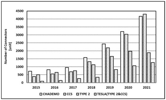 - Lilly, C. EV Connector Types. 2020. Available online: https://www.zap-map.com/charge-points/connectors-speeds/ (accessed on 28 December 2021).