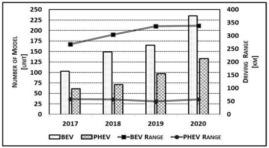 - Electiric Vehicle Database (EV-Database). All Electric Vehicles. Available online: https://ev-database.uk/#sort:path~type~order=.erange_real~number~desc|range-slider-range:prev~next=0~600|range-slider-bijtelling:prev~next=0~600|range-slider-acceleration:prev~next=2~23|range-slider-fastcharge:prev~next=0~1100|range-slider-lease:prev~next=150~2500|range-slider-topspeed:prev~next=60~260|paging:currentPage=0|paging:number=9 (accessed on 10 January 2022).