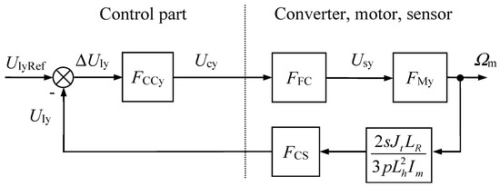 FCCy—torque-producing stator current controller transfer function, current controller gain KCCy = 0.4, time constant TCCy = 8 ms.