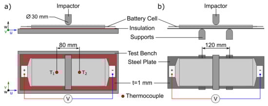 - Kisters, T.; Kuder, J.; Töpel, A.; Langkemper, R.; Nau, S.; Schopferer, S. Strain-rate dependence of the failure behavior of Lithium-Ion pouch cells under impact loading. J. Energy Storage 2021, 41, 102901. [Google Scholar] [CrossRef]