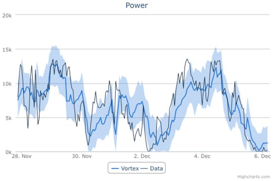 Vortex: Despite offering information under subscription, this database was included in this revision since it can be used in different applications, including graphic rendering, machine learning, and graph analytics [141]. Moreover, the data are highly useful for different companies due to the reliability and methodology used [116]. The Weather, Research, and Forecasting (WRF) model was implemented and developed with several atmospheric research centers. Additionally, ’Vortex EXTREMES’ has been developed using the WRF–LES technology with 30 years of historical data. This technology analyzes extreme wind speeds and calculates the estimated wind speed in each 10-minute time interval (see Figure 5). A low-resolution mesoscale combined with historical data was used for simulation purposes, considering six extreme-wind-speed days per year. A 180-day time series was then selected for the whole 30-year period. The deliverables include wind-speed, wind-direction, and standard-deviation values. These variables were validated for heights between 50 and 300 m. The information can be downloaded by considering coordinates or areas up to 400 km2.