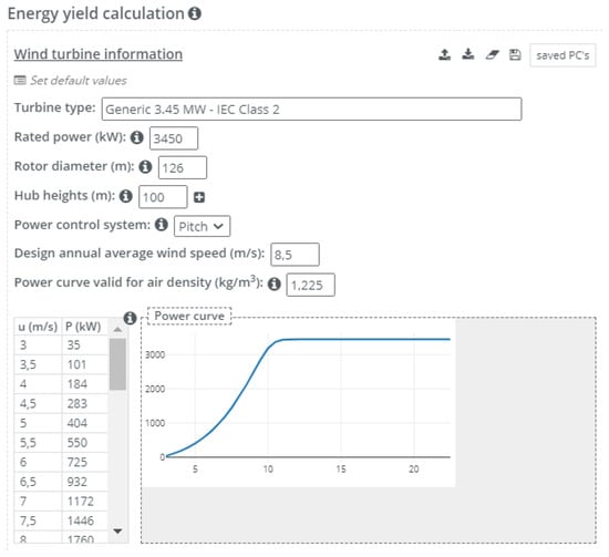 Wind speed, wind direction, and roughness can be downloaded even 200 km away from the coastline. Their energy calculation tool estimates the annual energy production and capacity factor by using the wind-turbine power curve (see Figure 8) [119].