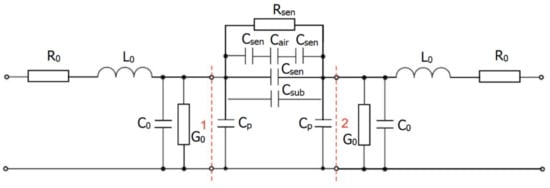 19]. The part between the indicated gates 1 and 2 represents a sensor platform connected to an impedance matched line. The impedance response of the measured sensor depends on several interrelated components. An integral part is the substrate response shown by the C