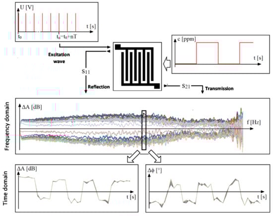 Figure 1). In the case of absorption of a certain analyte by the sensor, the complex permittivity of the whole sensor changes at a certain frequency [