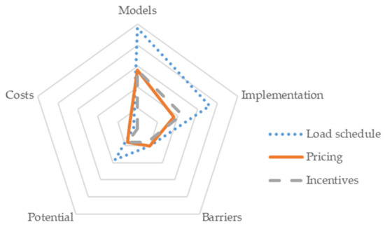 Currently, the research on the different DR assessment methods listed the main concerns as load schedule, pricing, and incentives as shown in Figure 8.