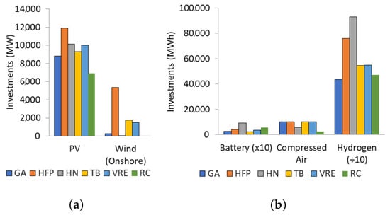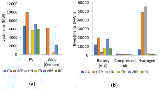 (a) 2030 investments in variable renewable generation. (b) 2030 investments in energy storage capacity.