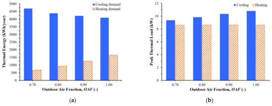 Simulated annual thermal demands (cooling and heating) and peak cooling and heating loads of a highly occupied indoor space served by three types of HVAC system (Figure 2).