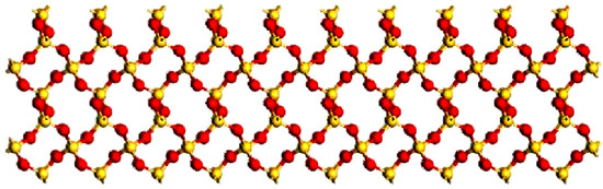 Quartz (SiO4) is a crystalline mineral formed by connecting silicon-oxygen tetrahedrons through a common vertex. Among them, the silicon atom located in the center of the tetrahedron is bonded with four oxygen atoms, and each oxygen atom is bonded with two silicon atoms to form a quartz skeleton structure. The quartz in nature is dominated by α-quartz. Therefore, the α-quartz molecular model based on the CLAYFF force field is shown in Figure 3.