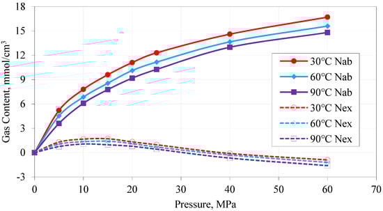 Shale gas is an important energy resource, and it is mainly stored with free gas and adsorbed gas in shale reservoirs, with adsorbed gas accounting for 20~85% [1,2]. The shale gas reservoir usually has low permeability and low porosity. Generally, the shale matrix porosity is less than 10%, and its permeability is approximately 10−5 mD [1]. Meanwhile, it has high organic matter content, rich nano-pores, and large specific surface area, which are favorable for methane adsorption, as the main component (more than 95%) of shale gas [3,4,5]. With the development of shale gas reservoirs, deep shale gas has been gradually focused on because of its considerable reserves. For example, among the huge marine shale gas resources in the Sichuan Basin, in China, more than 80% of shale gas is in deep and ultra-deep layers below 3500 m, which is the main area to develop in the future. However, many challenges are faced when developing deep shale gas reservoirs because of its complex mechanisms caused by special reservoir conditions; among them, shale gas adsorption is unclear under high temperature and high pressure (HTHP).