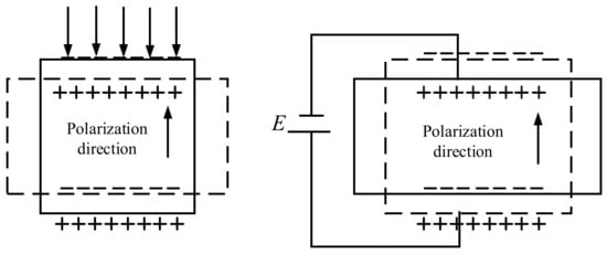 Schematic diagram of direct piezoelectric effect and inverse piezoelectric effect [28].