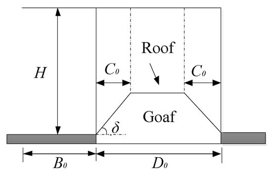 After the working face was mined, the overlying strata load was transferred to the goaf boundary. If the mining height was great or the roof was hard and had difficulty caving, and the caving gangues did not fill the goaf without any supporting effect on the overlying strata, then the hanging roof length in the goaf and the strata load borne by the coal pillars were great. If the mining height was small or the roof could be easily caved, and the caving gangues filled the goaf, exerting a supporting effect on the overlying strata, then the hanging roof length in the goaf was short and the strata load borne by the coal pillars was small [27].