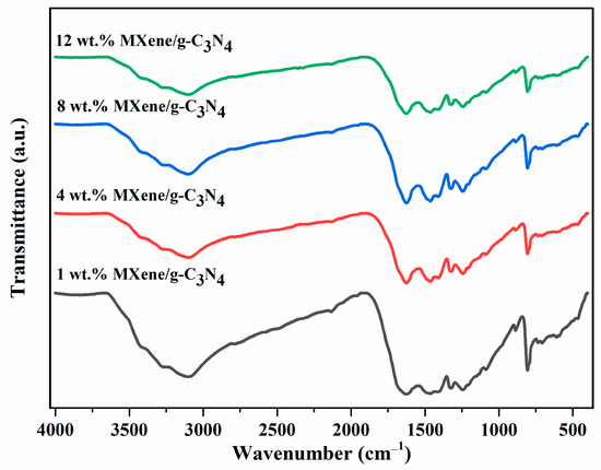 FTIR patterns of the as-prepared MXene/g-C3N4 photocatalyst.