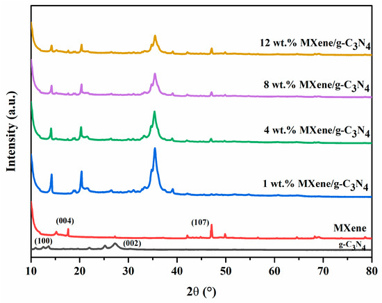 XRD patterns of the as-synthesized MXene/g-C3N4 heterostructure photocatalysts.