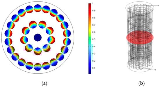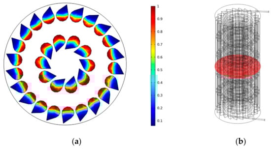 As depicted in Figure 2, the TES with PCM has three main components to model: the macro-encapsulated PCM, water flow into the coil, and a stagnated external substance for sensible heat storage. Every component was modeled based on transport phenomena equations [53]. These equations were solved by COMSOL Multiphysics 5.6 based on finite element formulation (FEM).
