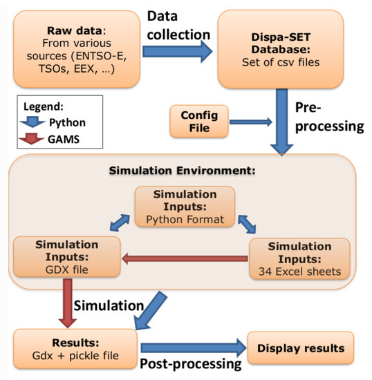 The unit commitment and optimal dispatch model adopted for this study is based on the Dispa-SET model, an open-source tool originally developed for the case of the European Union [29]. The pre- and post-processing tools of the model are written in Python, and its model is a mixed integer linear programming (MILP) model, which is implemented in GAMS [30].