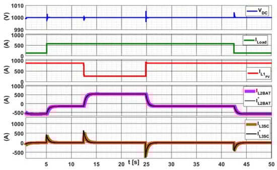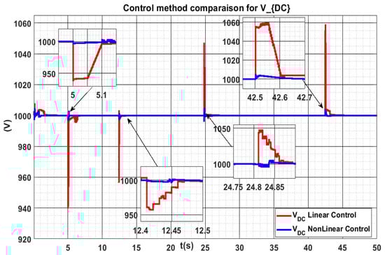 In the field of MicroGrids, linear control methods are generally used, as in [4,5,6,7,8]. These works use the small signal model of converters and apply the industrial standard PI control, mostly addressing the stabilization of the MicroGrid’s DC voltage. In those works, the control voltage performances are acceptable in terms of voltage overshoot and settling time, and stabilization of the whole DC MicroGrid is attained. Nevertheless, such control methods can correctly stabilize a MicroGrid only in steady state, when parameters do not vary much. On the other hand, if several parameters are time-varying, such linear controllers cannot ensure good performance (sometimes not even stability) for the several operating points associated with such variations. Therefore, developing new control structures to improve systems’ performance is necessary.