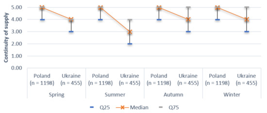 An average consumer of tap water in Poland is a person using it usually in summer, drinking it directly from the tap without boiling it and not using any additional device for filtering and/or treatment. On the other hand, the following can be considered as distinctive characteristics of tap water consumers from Ukraine: using water in winter, not drinking it directly from the tap (without prior boiling) and using an additional device for filtering and/or treatment. This confirms the noted differences in individual habits connected with use of tap water among Polish and Ukrainian consumers. Continuity of water supply is very important because in this case, there is no need for prolonged storage in various types of containers.