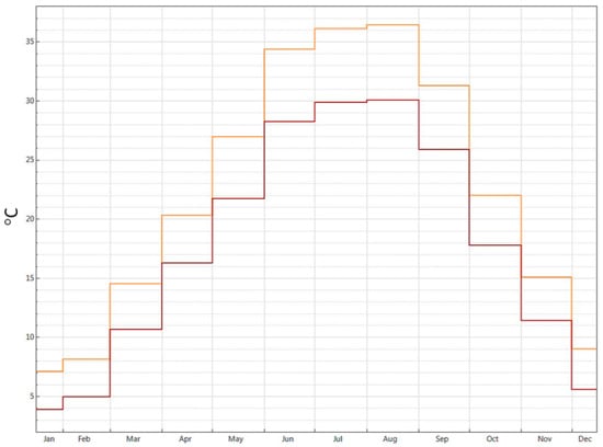 For data evaluation purposes, the weather station Tehran-Mehrabad was selected. This station was chosen, mainly because the educational buildings in this climate have not been highly regarded; on the other hand, a ‘present day’ EPW file was available only for a few cities in Iran. Figure 3 compares the dry temperature of Tehran for the present weather file and 2080. The darker color shows the present dry temperature, while the lighter one shows the 2080 dry temperature. This graph shows that the dry temperature will increase in the future. So, it is necessary to propose an optimized solution for both climate conditions.