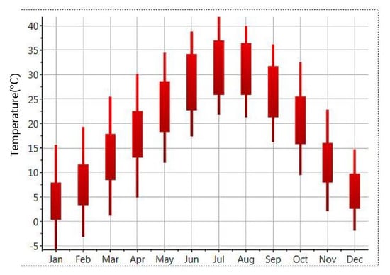 The outdoor climate and indoor environment of a building are inextricably bound up with each other; so, a building’s energy consumption is closely related to outdoor climate factors. The atmosphere is overloaded with carbon dioxide caused by fossil fuels being burned for energy. The Intergovernmental Panel on Climate Change (IPCC) estimates that global greenhouse gas (GHG) emissions increased by 70% between 1970 and 2004 (IPCC, 2007) [1]. According to the International Energy Agency (EAI), to keep global warming below 2 °C, CO2 emissions need to be reduced by 77% by 2050. Climate change is estimated to have an effect on the environment [2]. A building provides a comfortable indoor environment, and the change in outdoor climate will affect building energy consumption. Many studies have shown the effects of global climate change on the energy consumption of buildings around the world. Wan et al. examined the impact of climate change on the energy consumption of buildings in different climate zones in China for two emission scenarios. The results show that more energy consumption would result in larger emissions, and consequently larger emissions would lead to climate change and global warming. The impact of climate change on building energy use could be reduced by energy conservation measures [3]. Ciancio et al. examined the relative impact of global warming for the future years 2050 and 2080 across 19 European cities of different Koppen-Geiger climate classes to compare the current and estimated future energy requirements of a hypothetical house [4]. The results show that, due to the progressive increase in average temperatures in 2050 and 2080, the heat energy demand for heating will decrease, while the demand for electricity for cooling will increase over this period of time.