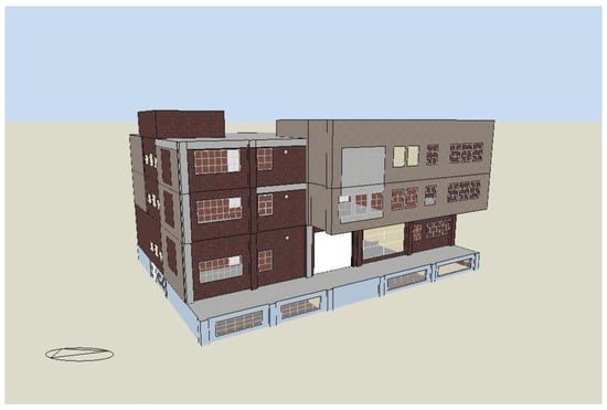 In order to minimize the energy consumption of the building, it is important to optimize the shell. The aim of using passive strategies was to obtain the measures that would deliver the optimized annual cooling load, annual heating load, and investment costs. It was examined to what extent the passive measures could reduce the annual cooling and heating load through these retrofit measures. For the assessment, the building was simulated with the DesignBuilder software using the heating and cooling system. The simulated model, which was carried out by DesignBuilder, is shown in Figure 8.