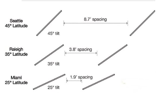 Latitude-tilt and spacing implications at three locations.