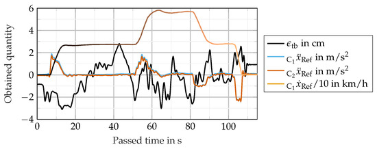 Therefore, the deviation of the devices is in accordance with their specification. Longitudinal acceleration in Car1 or Car2 with the fixed coordinate system shows little difference due to the mechanical coupling by the tow bar, which causes crabbing at the rear car. Moreover, the velocity profile is shown and does not indicate a strong correlation between error dynamics and longitudinal acceleration.
