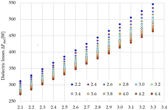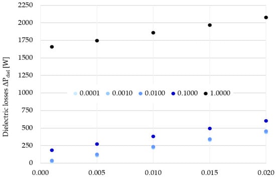 The analysis of losses, described in detail in the following subsections, contains many simplifications, because the author’s intention was not to accurately calculate the value of dielectric losses, but only to estimate them in relation to the total losses and to analyze the impact of electrical permittivity and the dielectric loss coefficient of insulating materials on the value of dielectric losses.