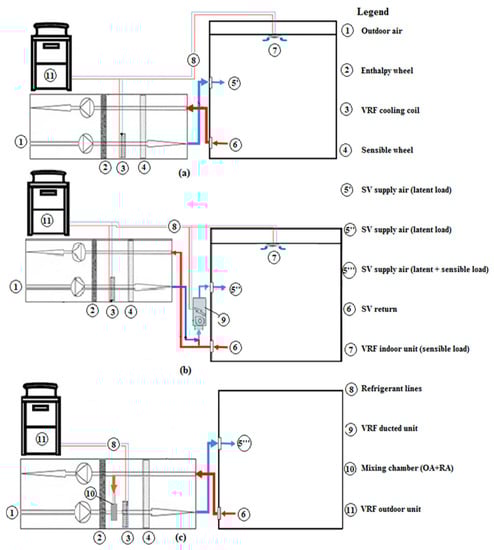 - Aynur, T.N.; Hwang, Y.; Radermacher, R. Integration of variable refrigerant flow and heat pump desiccant systems for the cooling season. Appl. Therm. Eng. 2010, 30, 917–927. [Google Scholar] [CrossRef]