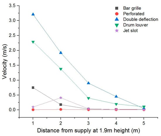 - Influential or distinct performance in terms of velocity distribution was not observed with any of the studied diffuser types.