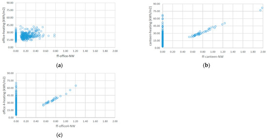 - Comparing different locations within the layout, the ff-ratios of corner rooms showed stronger correlations with energy demands than the other locations, as explained in Section 4.4 and Section 4.5;
