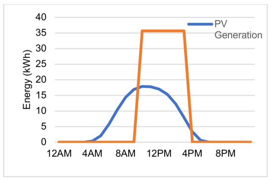 The off-grid component or solar pump PV system does not follow conventional design assumptions in this manuscript; rather, a novel design strategy is proposed based on the total energy wasted as a result of adopting this strategy. Figure 2 shows typical daily PV generation and load profiles of a day-time business office, where it clearly shows that the peak load is not concurrent with the peak PV generation, making them non-complementary and creating a need for a grid connection or energy storage element in the on-grid and off-grid cases, respectively.