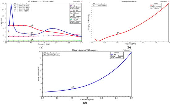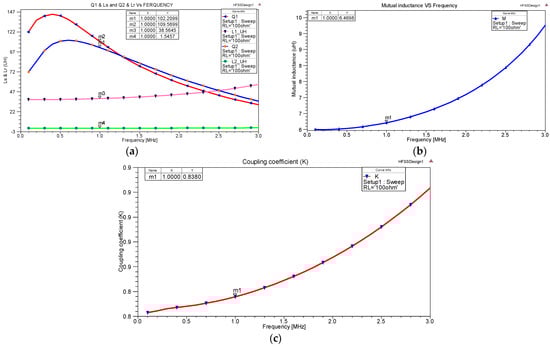 The other component, the mutual inductance (M) between transmitter and receiver coils can be obtained from a simulation of the Z-parameter as in Equation (6), and the coupling coefficient (k) is calculated from Equation (7):