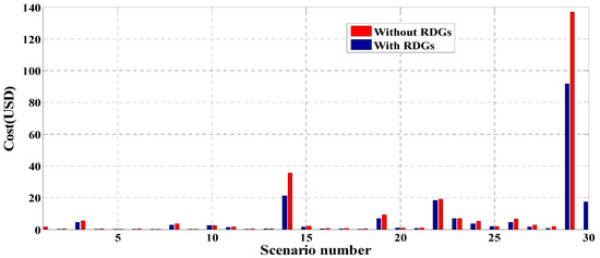 Figure 13. Total cost for each 30-bus system scenario.