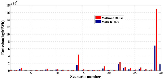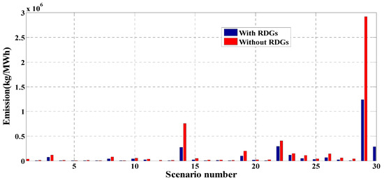 Figure 8. Total emissions of each 69-bus system scenario.