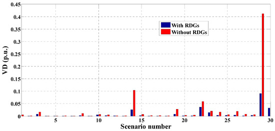 Figure 15. Total VDs for each 30-bus system scenario.