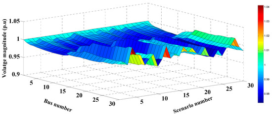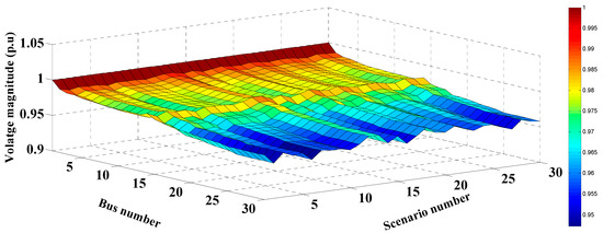 Figure 18. The voltage profile of the 30-bus network with RDGs.