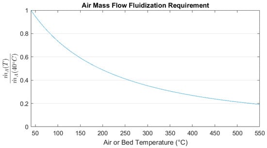 Required fluidization air mass flow depending on temperature relative to 40 °C.