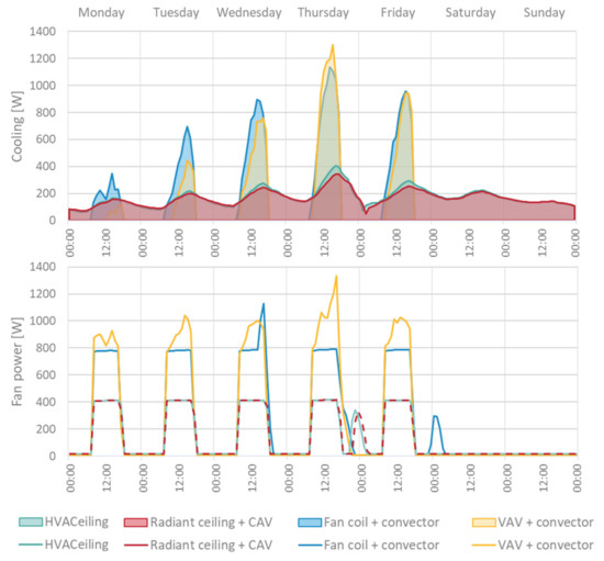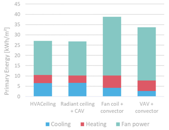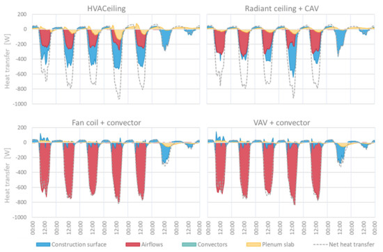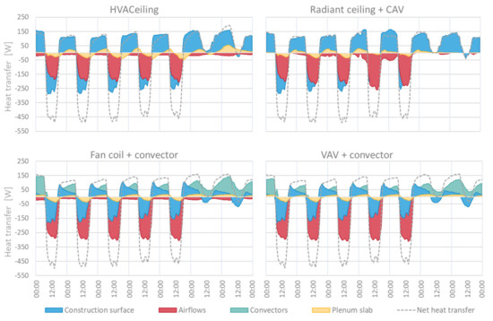- During a warm week, the HVACeiling peak power was 64–69% lower than all-air solutions. During a cold week, peak power was ±10%. Yearly energy savings were 20–30% on primary energy;
