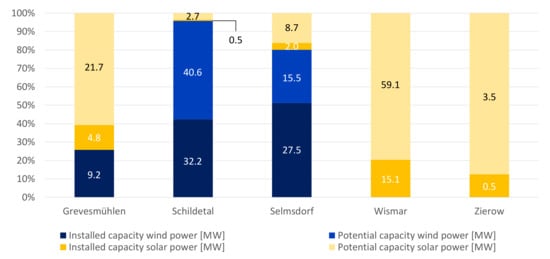 - Gemeindedaten Für Die Landkreise Nordwestmecklenburg Und Ludwigslust-Parchim, Sowie Der Stadt Schwerin, Regionaler Planungsverband Westmecklenburg. 2019. Available online: https://www.atlas-energie-wm.de/gemeindedaten.html (accessed on 13 December 2021).