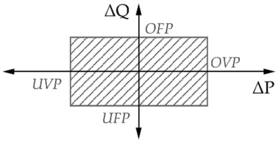 Example of NDZ zone based on monitoring grid’s frequency and voltage parameters.