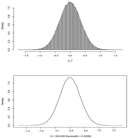 Next, by simulating N (with N = 500,000) trajectories of as defined in Equation (16), an estimate according to Equation (10) was obtained using the following estimator: