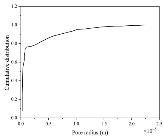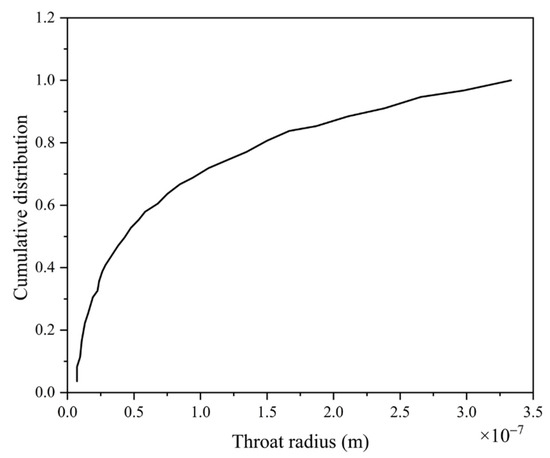 Thus, the cumulative probability distribution of throat radius can be obtained, as shown in Figure 3.