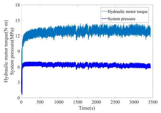 Changes in hydraulic motor torque and system pressure during long-term operation of the PTO system.